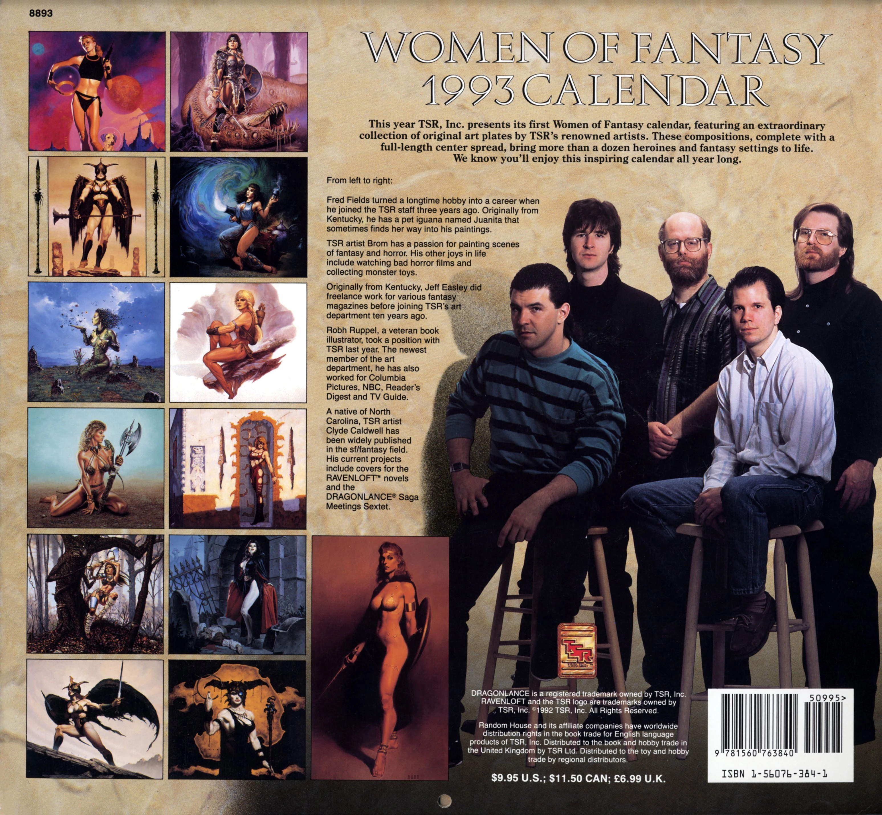 Kalendarz Women of Fantasy z 1993. Grafika z pierwotnego projektu okładki druga od góry po prawej