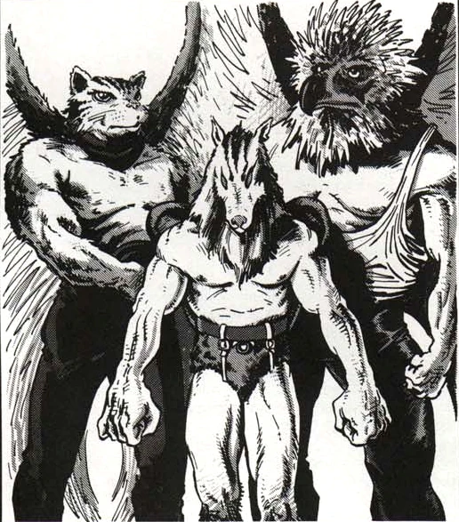 Archoni, ludzkie sylwetki o zwierzęcych cechach