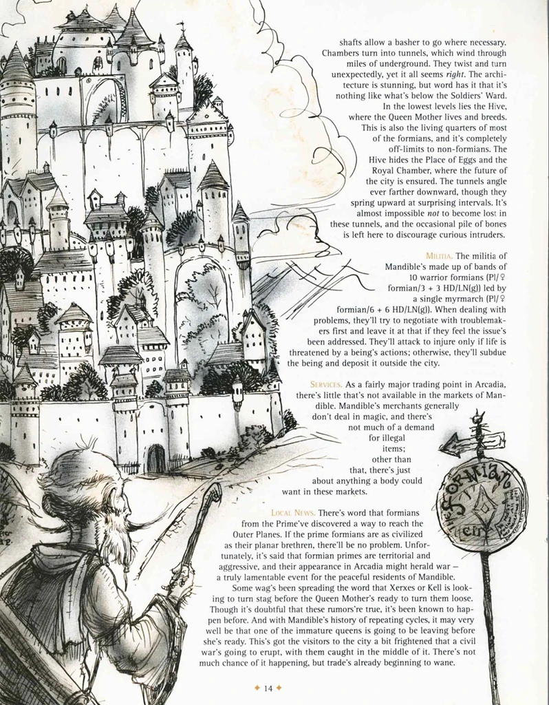 - Szczęki i Merkantus to jedno miasto formitów, wysoce społecznej rasy ludzi-mrówek. Wyglądem przypomina ono ludzkie ufortyfikowane miasto, lecz tuż pod nim znajdują się liczne tunele formitów oraz siedziba ich królowej.