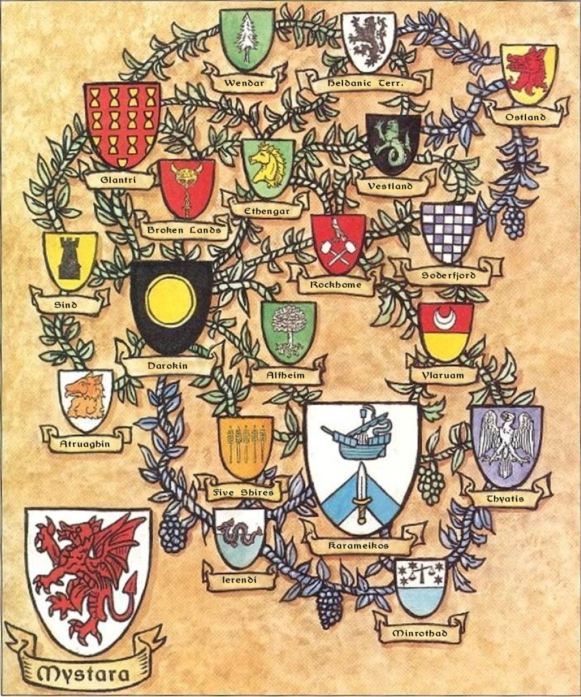 Jak wskazuje nazwa, "Znany Świat" obejmuje najistotniejsze narody Mystary. Należą do nich:
