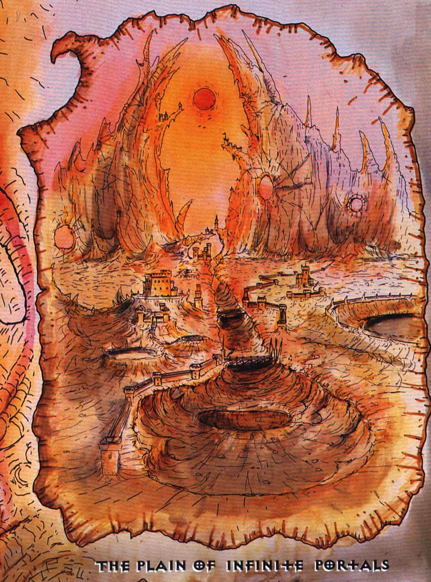 - 601 - Pożogatorum (ang. Conflagratum), nieustannie płonące świetlistym ogniem ruiny miasta o niezwykłej architekturze. Kraina władcy demonów Alzriusa, Pana Piekielnego Światła.