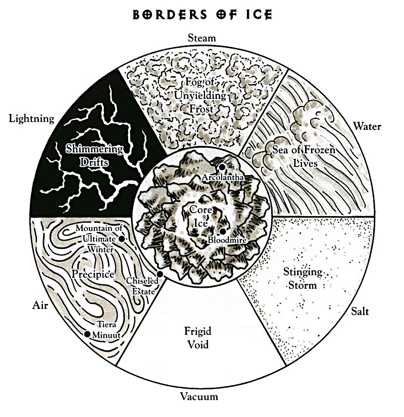 Paraplan Lodu jest tak zimny iż cokolwiek przywiezione tutaj zamarza. Wiadome jest, iż w zimniejszych regionach innych planów większość cieczy zamarza, lecz nie do końca to mam na myśli. Tutaj, ciało zamarza. Krew zamarza. Kamień zamarza. Powietrze zamarza. Zamarzają wypowiedziane słowa. Zamarzają myśli. Nawet lód zamarza.