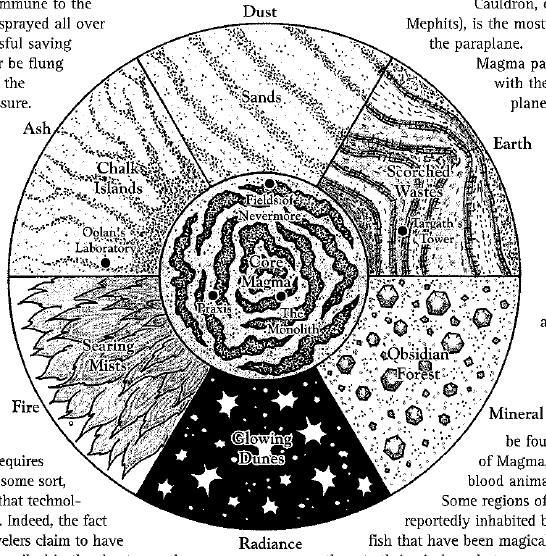 Zaklęcia rzucane na tym planie podlegają ograniczeniom wynikającym ze straszliwego gorąca. Zaklęcia sprowadzające przywołują istoty z planu magmy, ognia, ziemi, minerałów, blasku, pyłu i popiołu.