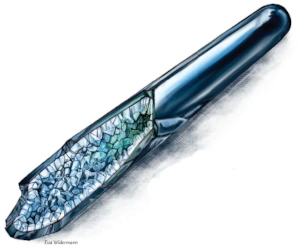 - 13-centymetrowy fragment może raz dziennie wywołać efekt podobny do czaru spowolnienie, trwający 23 minuty. Jego słowo rozkazu to „Coelum”.
