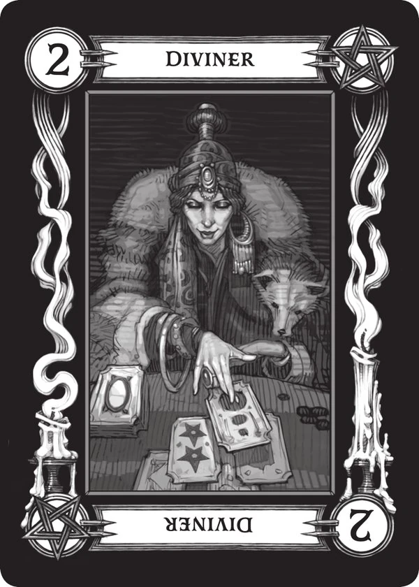 - Dwójka (Paladin) (ang. Two (The Paladin)) - Ta karta, oczywiście, związana jest z paladynami i innymi sprawiedliwymi i szlachetnymi wojownikami. Jest przyjacielem wszystkich dzierżących miecz i praworządne dobro w charakterze. Obrazek przedstawia dumnego i szlachetnego paladyna w zbroi z tarczą i mieczem. Ta karta jest symbolem wszystkich, którzy dążą do ostatecznego dobra poprzez prawo i porządek. W przeciwieństwie do lekkomyślnego, nieplanowanego dobra poprzedniej karty, to dobro zależy od uważnego planowania i ścisłego przestrzegania kodeksów honorowych i uczciwego postępowania. W swoich najbardziej podstawowych terminach, symbolizuje tryumf dobra nad złem.