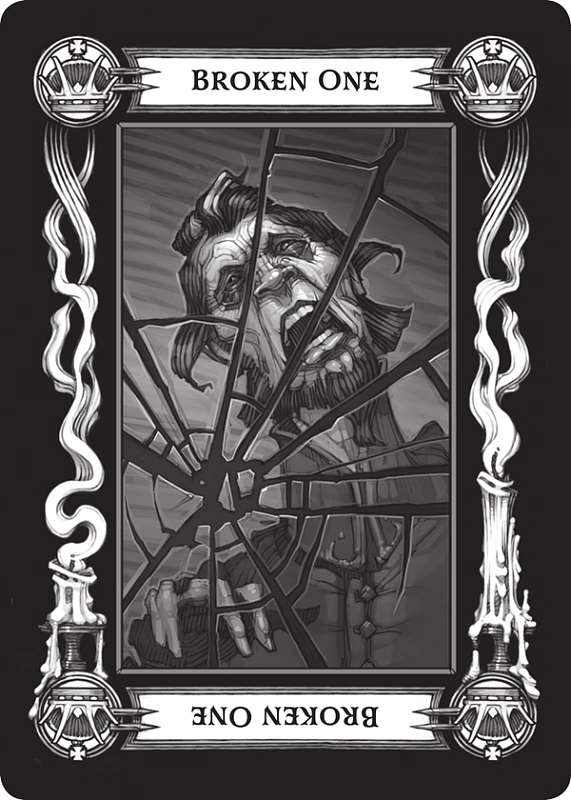 - Zniszczenie (ang. Broken One) - Ta karta oznacza porażkę, niepowodzenie lub rozpacz. Może nawet zwiastować całkowite umysłowe załamanie czy uszkodzenie. W niektórych przypadkach może ostrzec przed przyszłością, która czyha przed osobą, dla której wykłada się tarokka; w innych może wskazywać na spotkanie takiej osoby. Ilustracja na karcie przedstawia twarz załamanego mężczyzny w odbiciu rozbitego lustra.