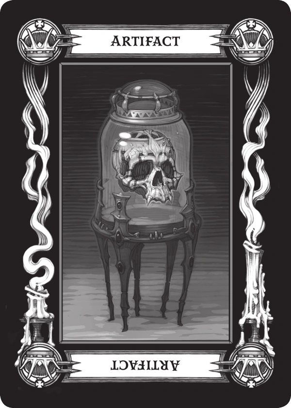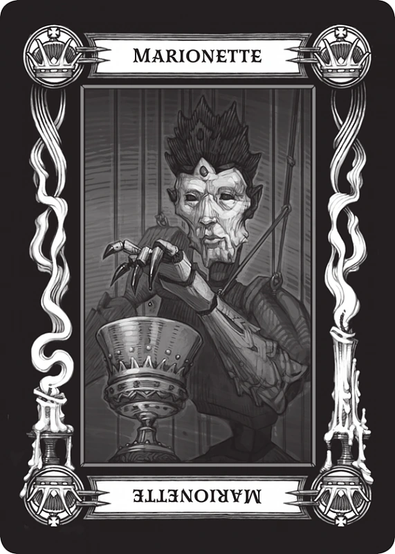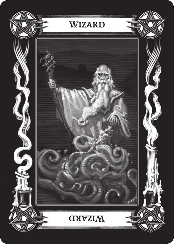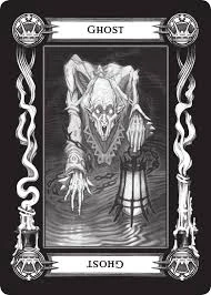 - Duch (ang. Ghost) - Kiedy ta karta wyłania się z talii tarokka, ostrzega przed wyłaniającą się przeszłością. Niektóre aspekty minionych dni, zarówno osobiste jak i powszechne, mają powrócić i utrudnić obecne działania. Dlatego duch nie zawsze jest ostrzeżeniem przed nieumarłym potworem, aczkolwiek może zostać tak oczywiście odczytany. Jednakże znacznie częściej oznacza coś mniej nadnaturalnego, jak stary dług czy zapomnianego wroga. Może także mówić o prastarej klątwie czy innym magicznym przeznaczeniu. Ilustracja jest mroczna i złowieszcza, gdyż pasuje ponurym ostrzeżeniom tej karty. Obrazuje rozmazaną i ponurą sylwetkę mężczyzny trzymającego latarnię.