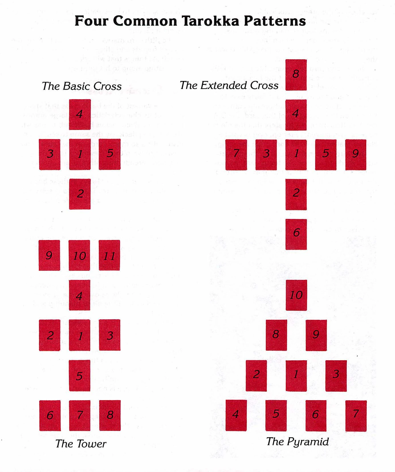 Takoż osoby wierzą w to, iż wzorce nadają pewnego rodzaju szacunku dla wykładania tarokka. Wciąż, iluzja myśli, planowania, przeznaczenia i determinacji kreuje się podczas wykładania kart we wzorce jako żywa dla nastroju i tonu sytuacji.