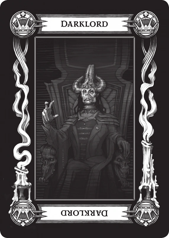 - Mroczny pan (ang. Darklord) - Ta karta przywodzi na myśl obrazy nieczystych władców wielu domen Ravenloftu. Zaprawdę rzadko jest to tak przerażające kiedy pojawia się w tarokka. Jednakże to co wskazuje jest pojedynczą istotną osobą. Często zły lub tyrański w swej naturze, ten władca może mieć armię sług do swej dyspozycji bądź też może kierować działaniami kilku łotrów. Jego intencje mogą być ogromnych konsekwencji (na przykład zbudowanie wielkiego kaplicy mocom zła) bądź też mogą być istotne dla niewielu (zabicie rywala w miłości). Jakakolwiek jest natura tej karty, jest złowieszcza i złowroga. Zależnie od jej pozycji w tarokka, ta karta może przewidywać istnienie takiego człowieka, jego pięcie do władzy czy nawet jego porażkę i upadek. Ilustracja na karcie obrazuje wykręconego i źle wyglądającego człowieka o zwierzęcych cechach zasiadającego na tronie, na którego głowie spoczywa mroczna korona.