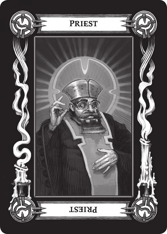 - Mistrz (Kapłan) (ang. Master (Priest)) - Ta karta jest patronem wszystkich tych, którzy wyznają bóstwo, system wartości lub którzy składają hołd naturalnym siłom wszechświata. Ucieleśnia pobożność jeśli dobra i bezbożność kiedy obierana jako zła. Ucieleśnia wierzenia i wartości wszystkich tych, którzy są religijni lub w jakiś sposób sługami większego dobra czy zła. Ilustracja przedstawia otyłego, brodatego kapłana w szatach i okularami.