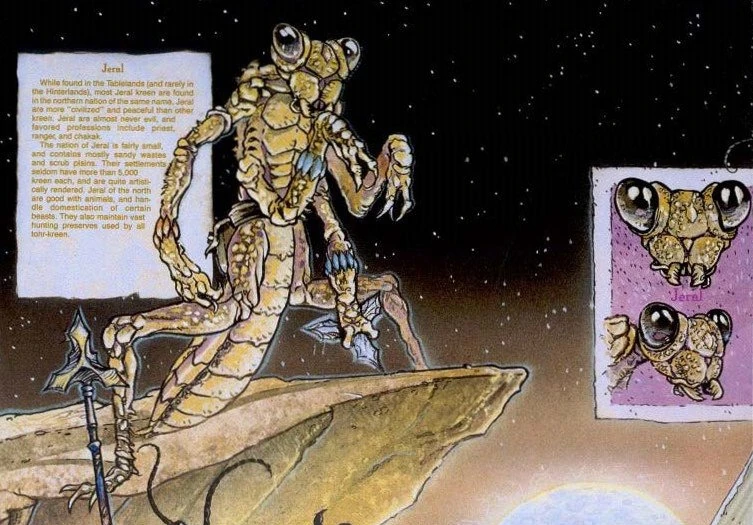 Tri-kriny to'ksa (po prawej) i jeral (po lewej), Dark Sun Monstrous Compendium Appendix II: Terrors Beyond Tyr (1995)