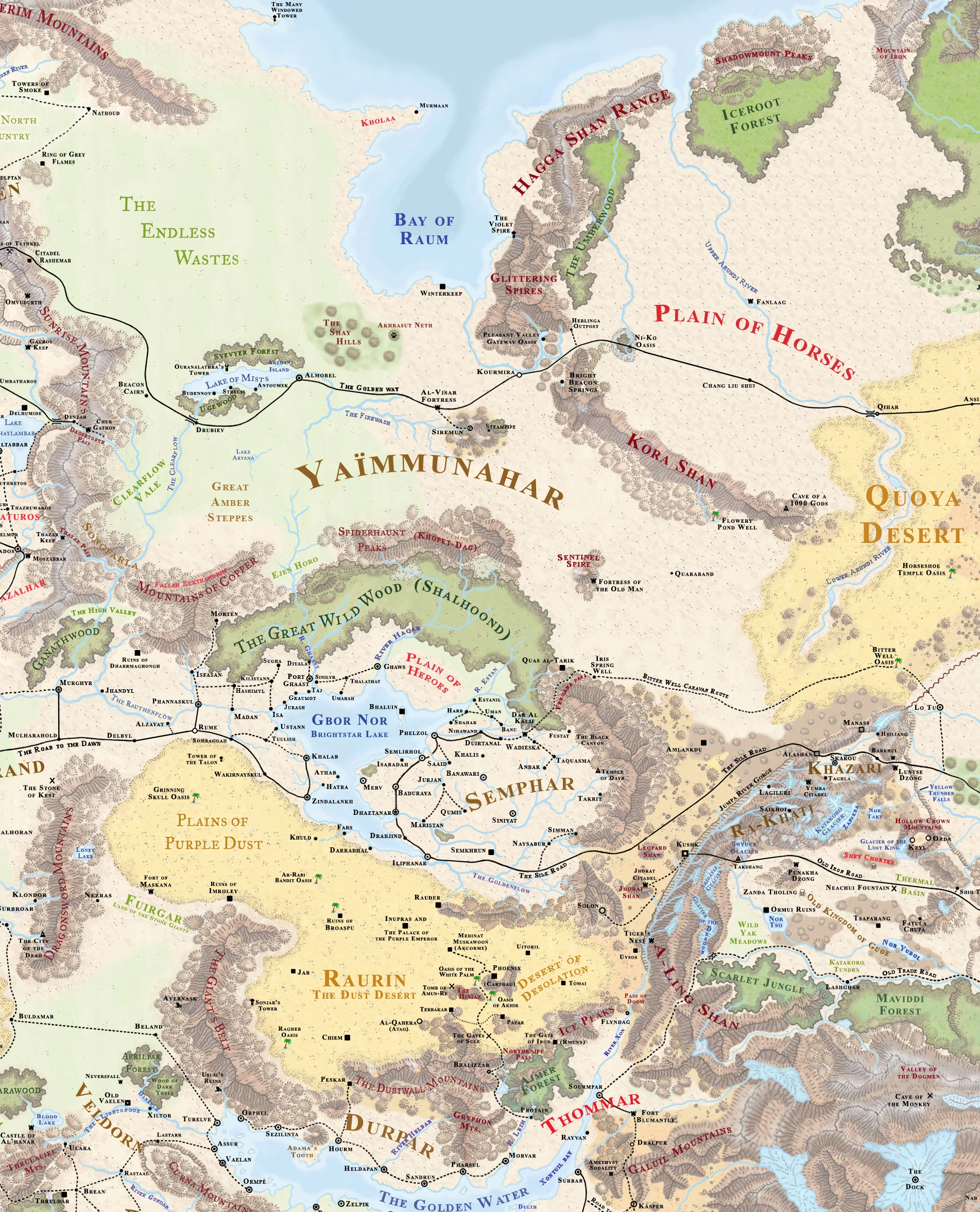 Jest to kraina suchego klimatu, surowych pustyń, suchych stepów, niebezpieczna. Prowadzi przez nią i jej oazy Złoty Szlak (ang. The Golden Way), jedyna handlowa droga łącząca Faerun z Kara-Tur.